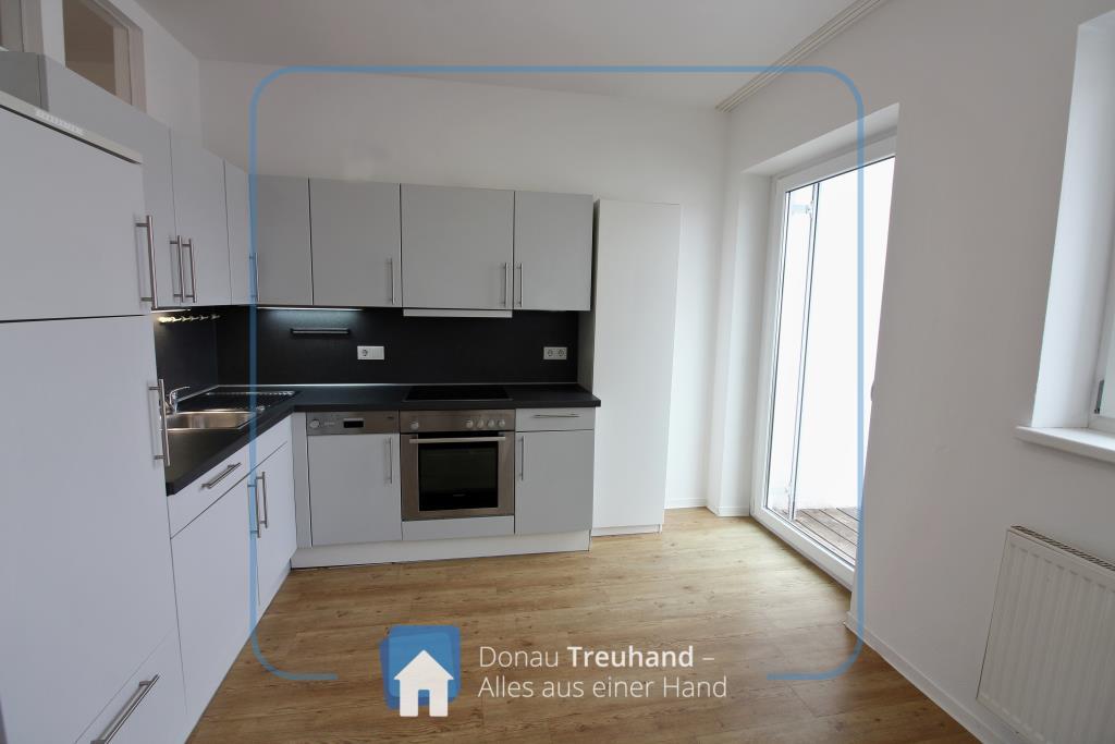 Dich erwartet eine moderne Ausstattung mit Einbauküche inklusive Elektrogeräten und ein Bad, das alles hat: Dusche und Wanne plus Waschmaschinenanschluss. Ein Kellerabteil gibt's natürlich auch dazu.