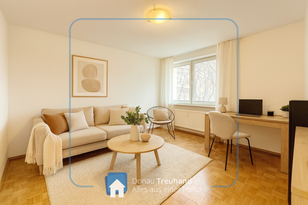 Diese 2-Zimmer-Wohnung in Passau-Rittsteig bietet eine klare und praktische Aufteilung. Das Wohnzimmer ist hell und hat Zugang zum Balkon.