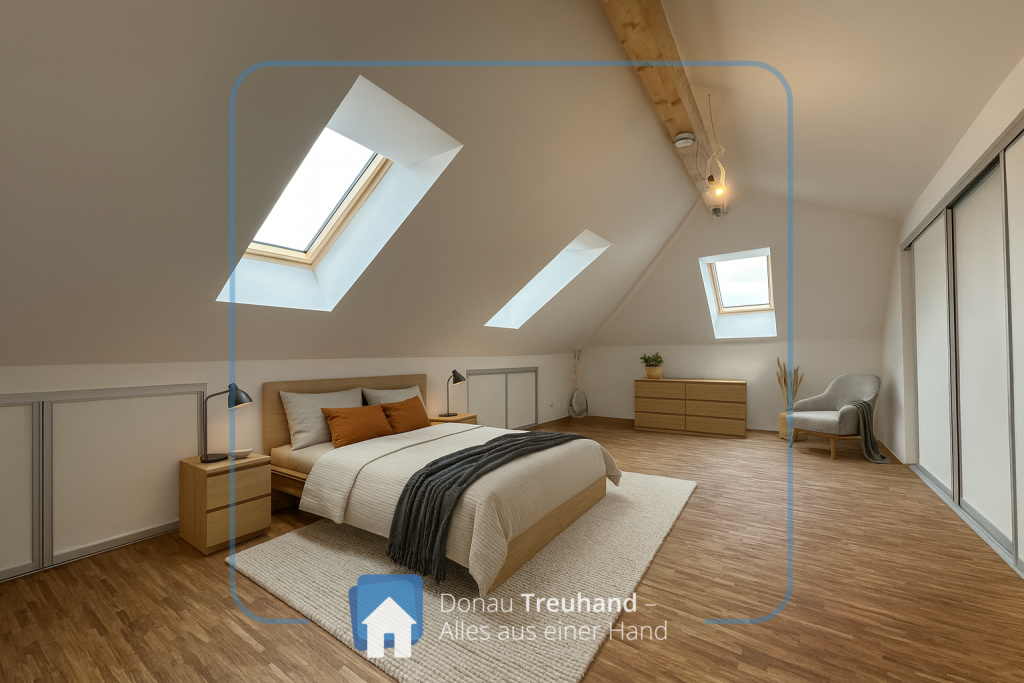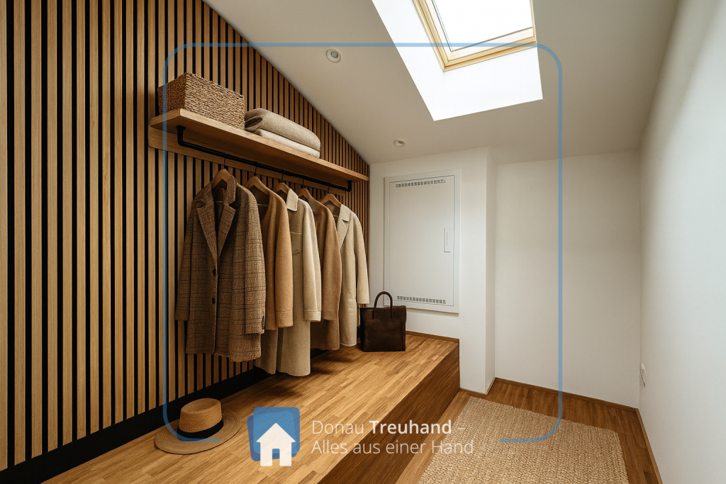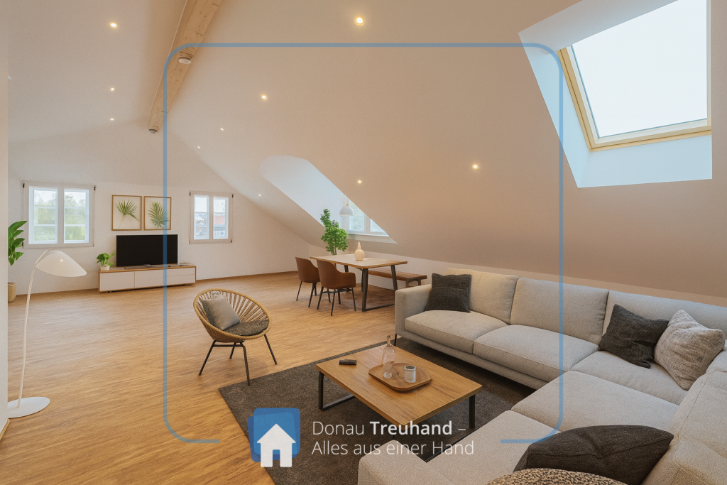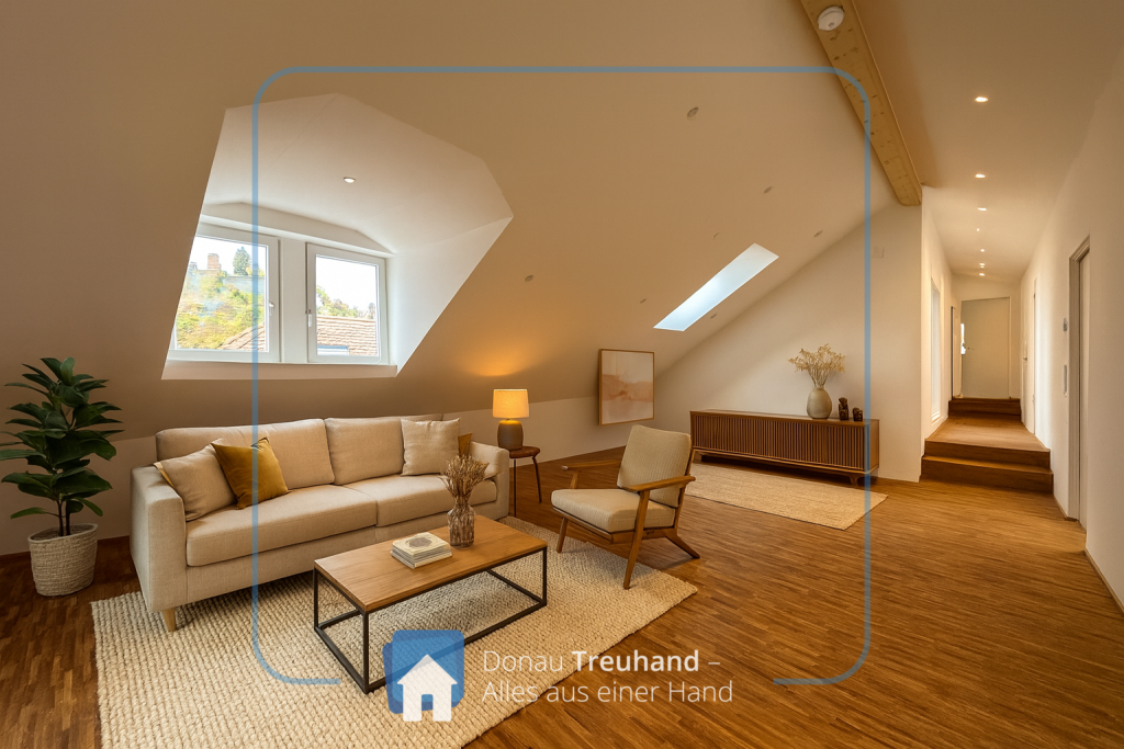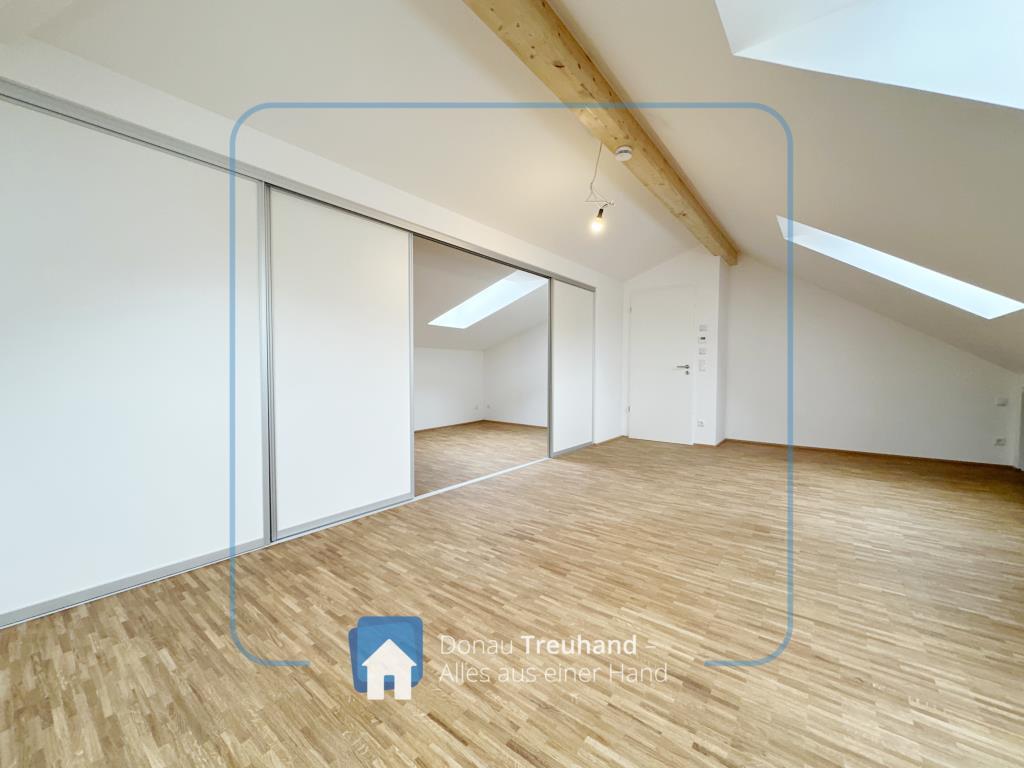 Die neu errichtete Wohnung befindet sich im frisch ausgebauten Dachgeschoss und ist mit hochwertigen Materialien ausgestattet. Der durchgehende Parkettboden sorgt für ein warmes, edles Wohngefühl, während im Eingangsbereich der historische Ziegelboden den Charakter des Hauses stilvoll aufgreift.