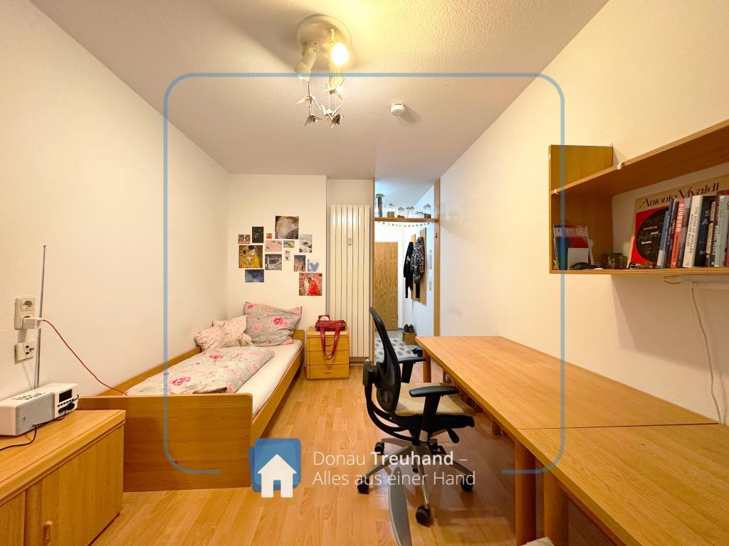 - Möblierung: Bett, Schrank, Tisch mit Stühlen, Kommode