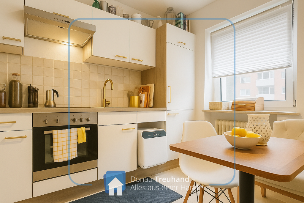 Die Wohnung bietet ca. 71 m² und ist praktisch aufgeteilt: Vom Flur aus geht es in die separate Küche mit Einbauküche und Platz für einen kleinen Frühstückstisch. Ein Abstellraum in der Wohnung sorgt für Extra-Stauraum.