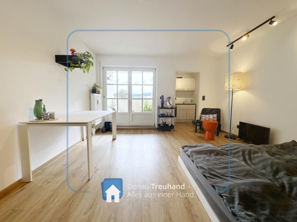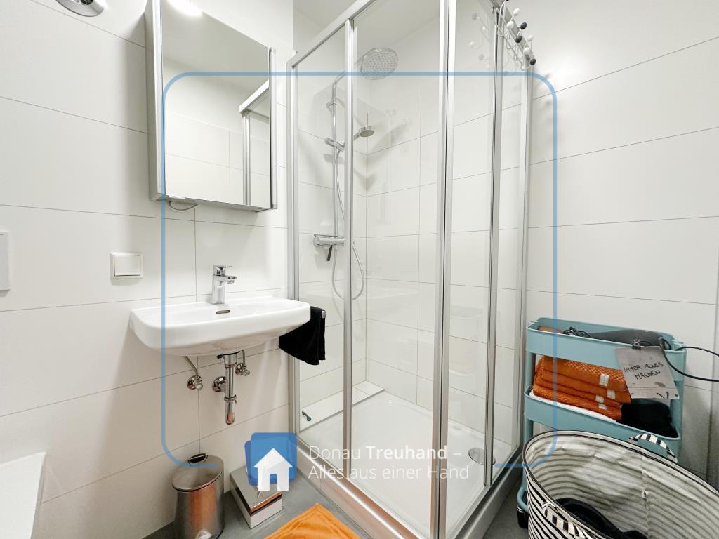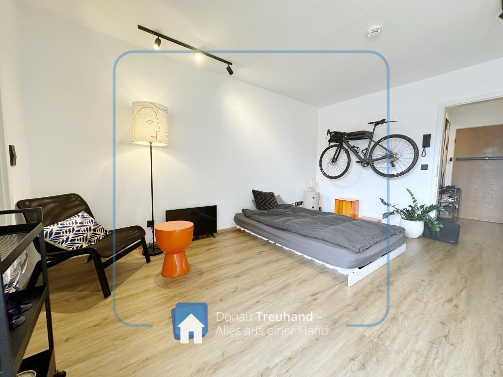 Top-modern, frisch saniert und voll ausgestattet – dieses 1-Zimmer-Appartement auf 30,8 m² überzeugt mit hellen Räumen, stylischem Vinylboden und einer neuen Pantryküche mit allen Geräten. Das Badezimmer ist clean mit weißen Fliesen, Dusche und Spiegelschrank.