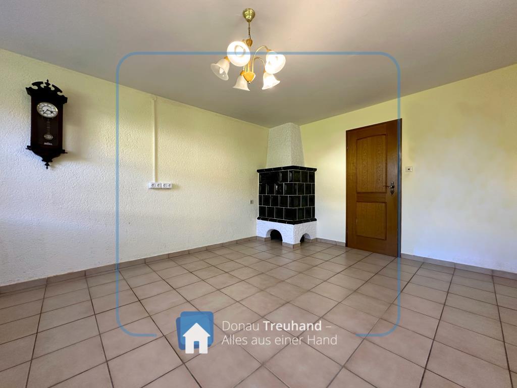 Die Raumaufteilung ist klassisch und funktional: Im Erdgeschoss führt ein langer Flur zu allen Räumen – darunter Küche, Wohnraum, weiteres Zimmer, Waschraum, Bad und separates WC. Ein gemütlicher Kachelofen in Küche und Wohnzimmer sorgt zusätzlich für wohlige Wärme und unterstreicht den charmanten, ländlichen Charakter des HausesÜber eine Holztreppe gelangt man ins Obergeschoss mit großem Schlafzimmer, zwei Kinderzimmern, Duschbad mit WC und Balkon. Ergänzt wird das Platzangebot durch den Dachboden sowie die Nebenräume wie Heizraum, Vorraum, Hofraum und Garage.