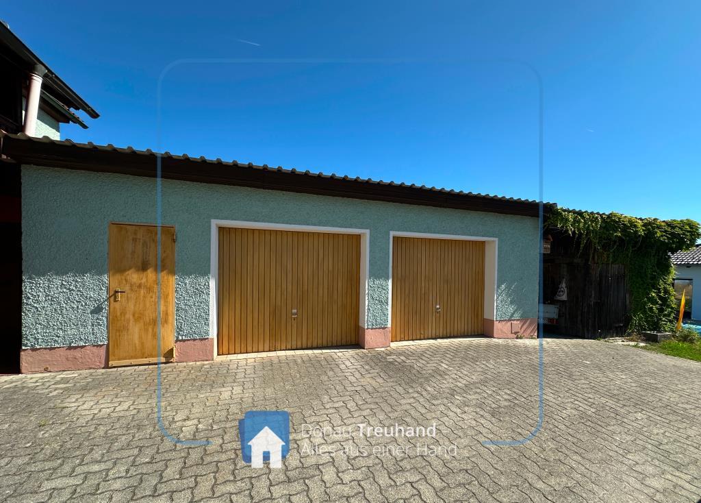 • Doppelgarage (Anbau 1980) mit breiter Einfahrt und zusätzlichem