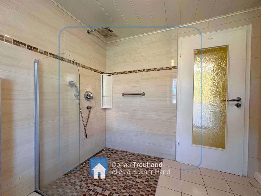 • Badezimmer mit ebenerdiger Dusche und Fenster, separates WC (2016 modernisiert)