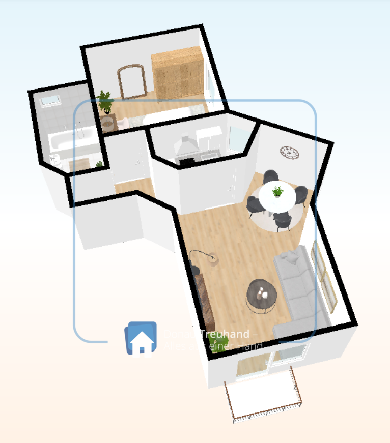 Die im Exposé verwendete Grundrissgrafik ist nicht maßstabsgetreu und soll lediglich einen Eindruck der Aufteilung der Wohnung vermitteln.