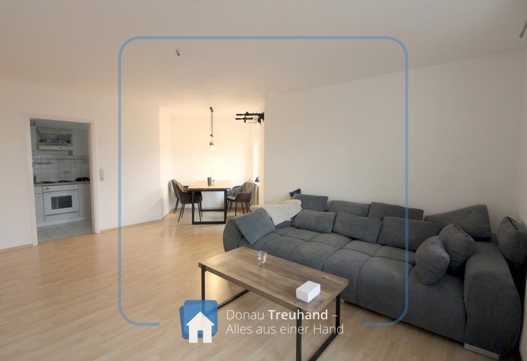 Das große Wohnzimmer mit Zugang zum Balkon bietet sehr viel Platz für Wohn- und Essbereich.