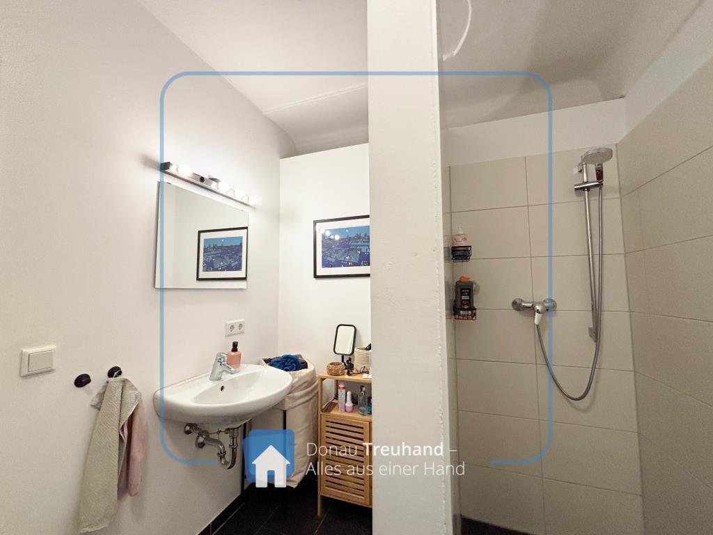 Das Badezimmer mit begehbarer Dusche und praktischem Handtuchheizkörper rundet den Wohnkomfort ab. Zusätzlich bietet der Flur ausreichend Platz für eine Garderobe und sorgt für einen einladenden Eingangsbereich.