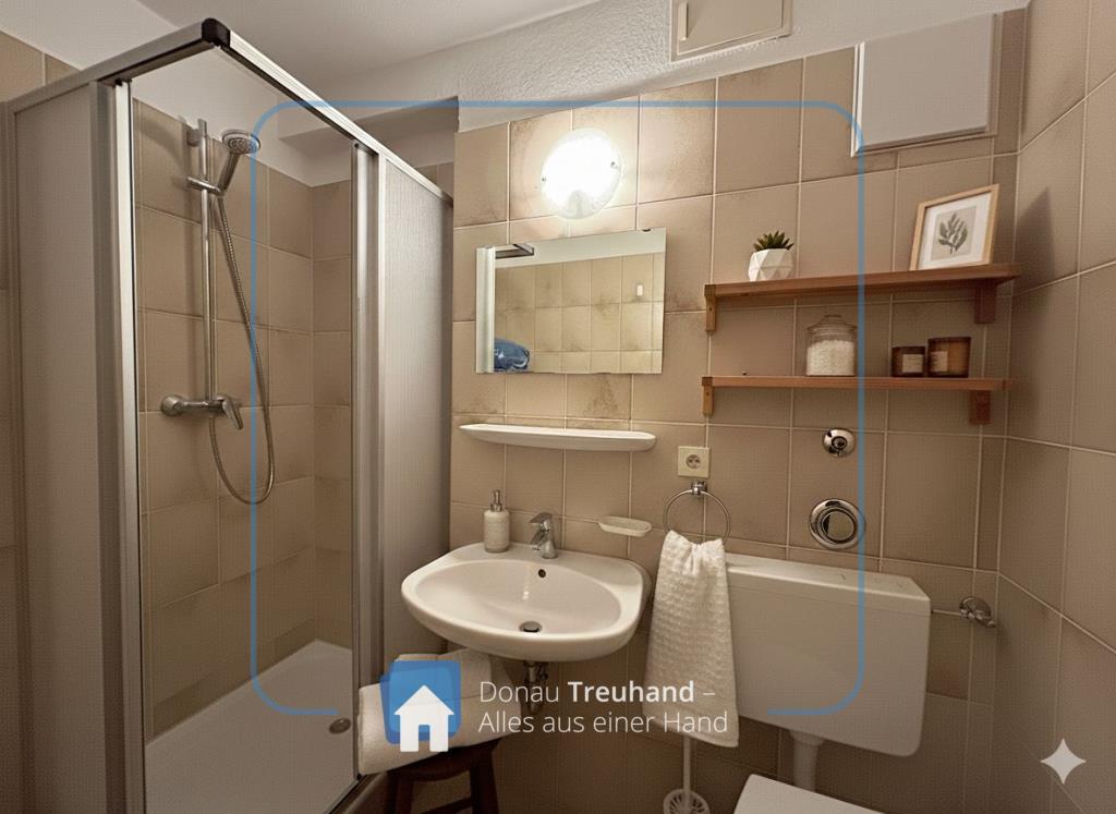 Die Wohnung überzeugt durch ihre praktische Aufteilung: Ein funktionaler Eingangsbereich bietet ausreichend Platz für eine Garderobe, während die bereits vorhandene Einbauküche und das Badezimmer mit Dusche für sofortigen Wohnkomfort sorgen. Die Einheit befindet sich in einem gepflegten Mehrparteienhaus mit Aufzug und ist bereits mit modernen Kunststofffenstern ausgestattet.