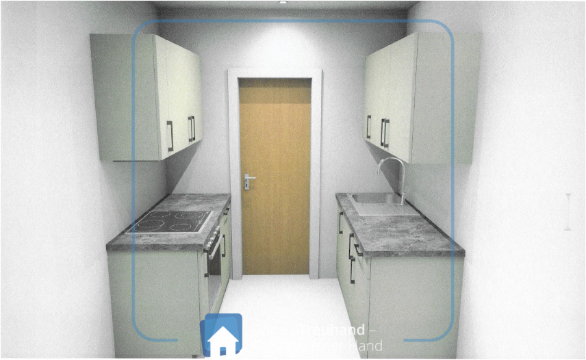 Der durchdachte Grundriss eignet sich ideal für eine Person. Der geflieste Vorraum bietet Platz für eine kleine Garderobe sowie die zweizeilige Einbauküche.